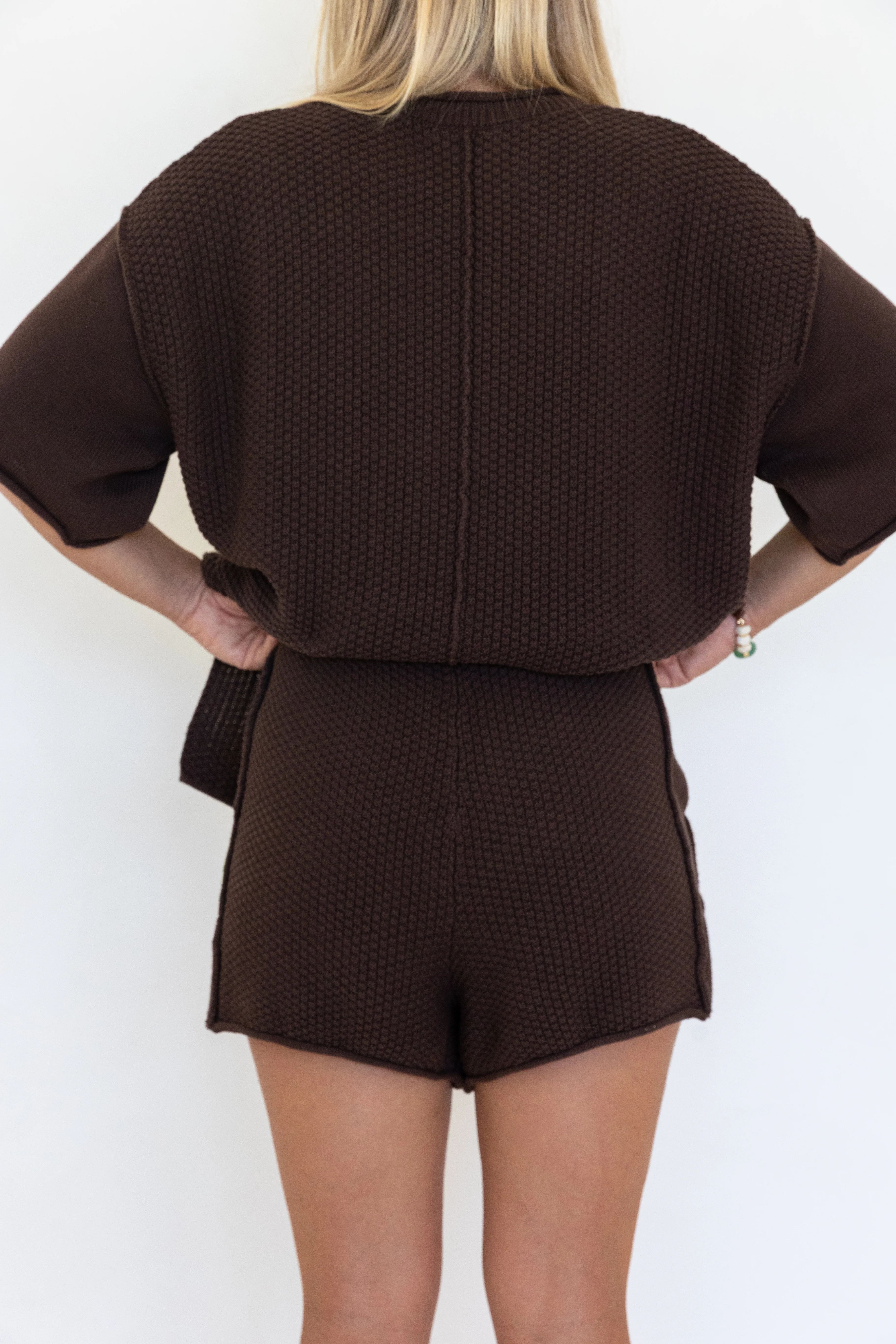 The Hinterland Knit Short is an easy, relaxed style designed for comfort and effortless wear. Knitted in a rich chocolate waffle stitch with spliced panelling and exposed seams. They feature side hem splits for extra comfort. A soft and comfortable fit, itās perfect for slow mornings, weekend lounging, or casual days out. Pair with the matching Hinterland Knit Top for a relaxed, coordinated set.