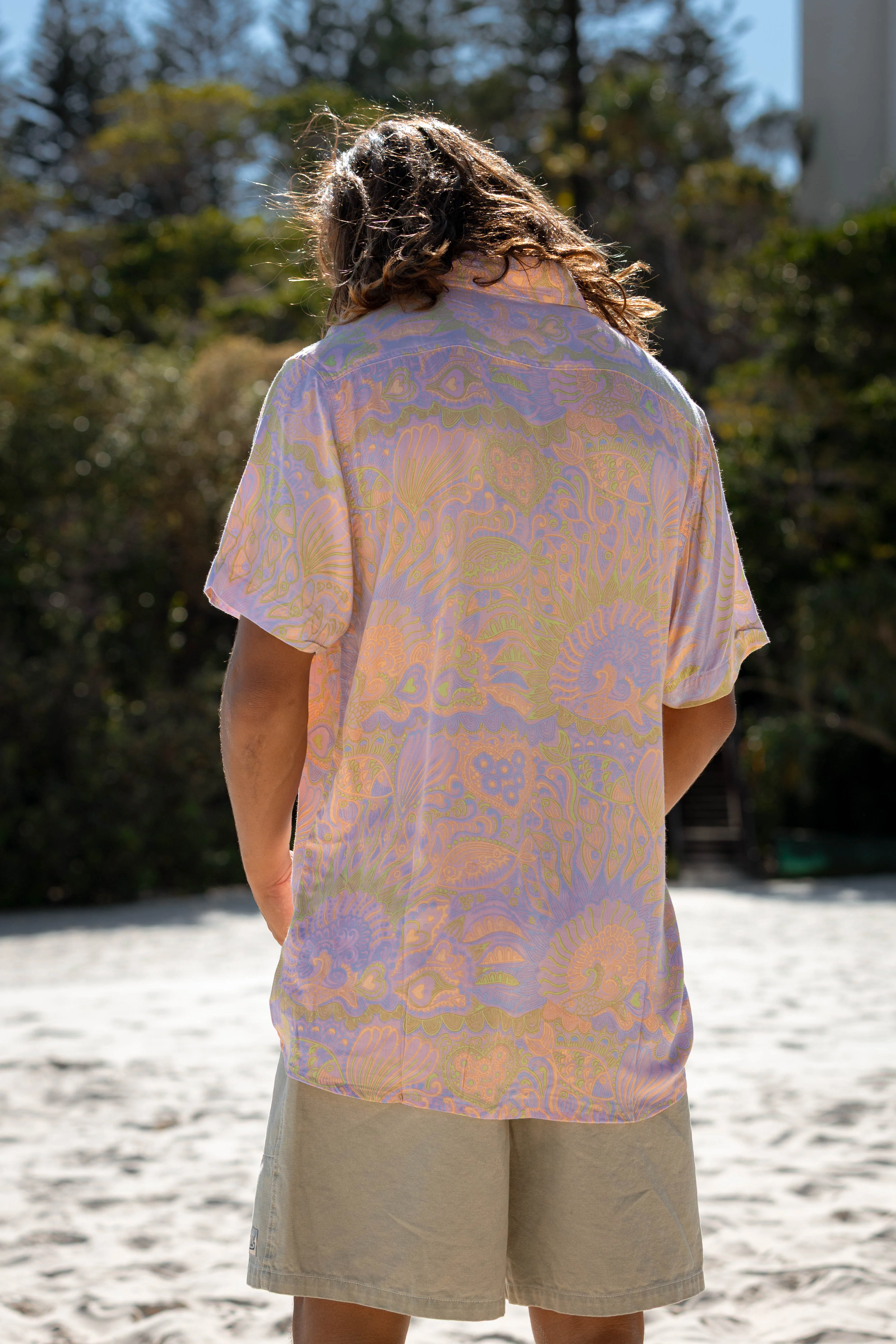 Get ready for summer with the Ruko Button Up! This eye-catching button up shirt features a colourful print that is an old favourite, now available in a new colour by popular demand.Â
